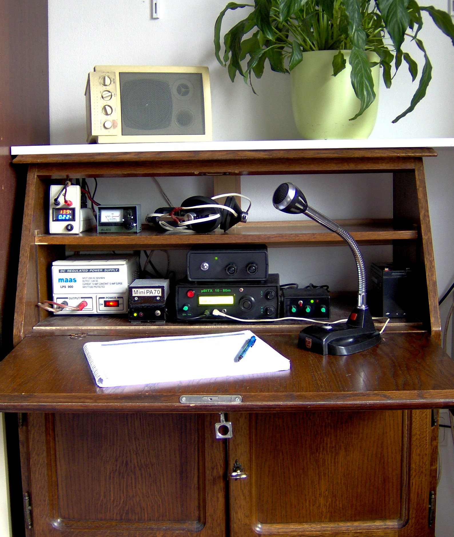 | Amaterski primopredajnik u preuređenom starom sekreteru Ham Radio Cabinet |